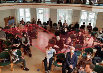 Besonders sichtbar wurde dies durch das rote Herz, welches im Wirrwarr der Wollfäden, die in einer Aktion wild durch die Gemeinde geworfen wurden, plötzlich und unverhofft sichtbar wurde. Diesen Effekt hatten wir unserer aktuellen Reli-Gruppe zu verdanken, die ungesehen dieses Herz entstehen ließen.