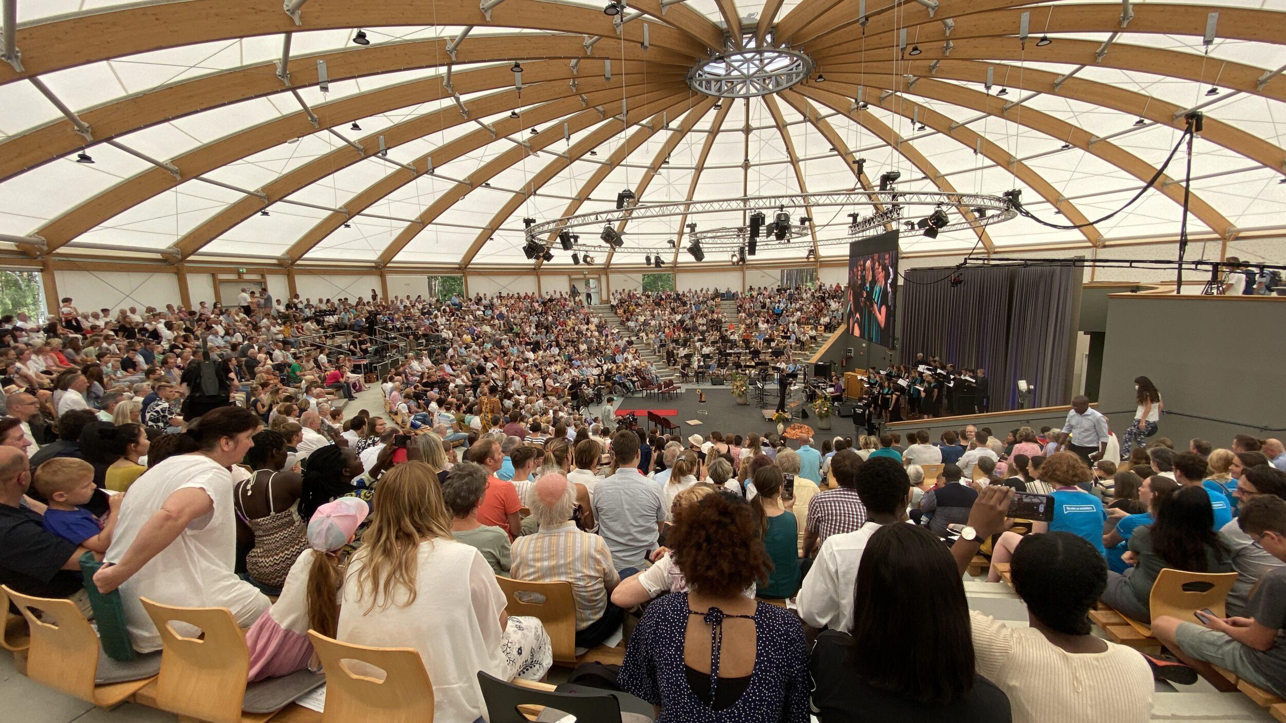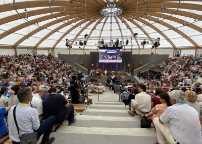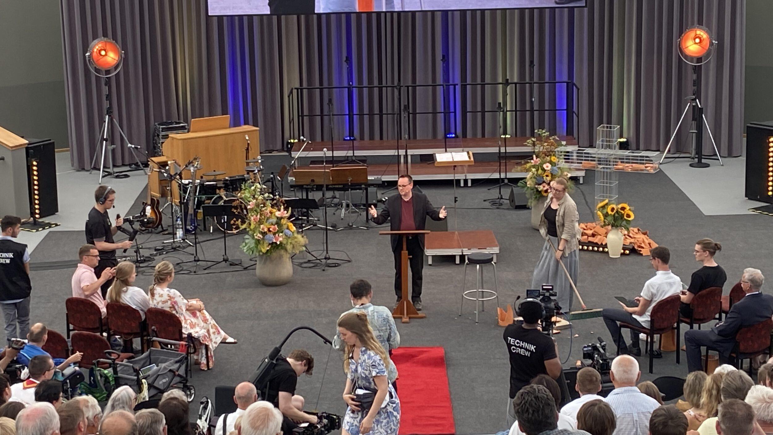 Auch aus den Dresdner Gemeinden haben so einige Geschwister den langen Weg auf sich genommen – und es sollte sich lohnen! Unter dem Motto #wirsindbmv wurde in einer gänzlich vollen Arena ein toller, musikalisch abwechslungsreicher und kreativer Gottesdienst gestaltet, bei dem Predigt und Anspiel miteinander verwoben wurden und eine Botschaft inhaltlich wie bildlich stark untermalten: „Gottes Schatz hat in dir Platz. Denn nicht die Truhe macht den Schatz, der Schatz macht den Schatz!“