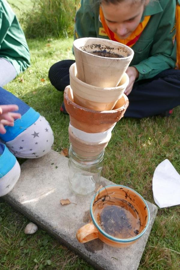 Wir bauten kleine Kläranlagen und Insektenhotels.