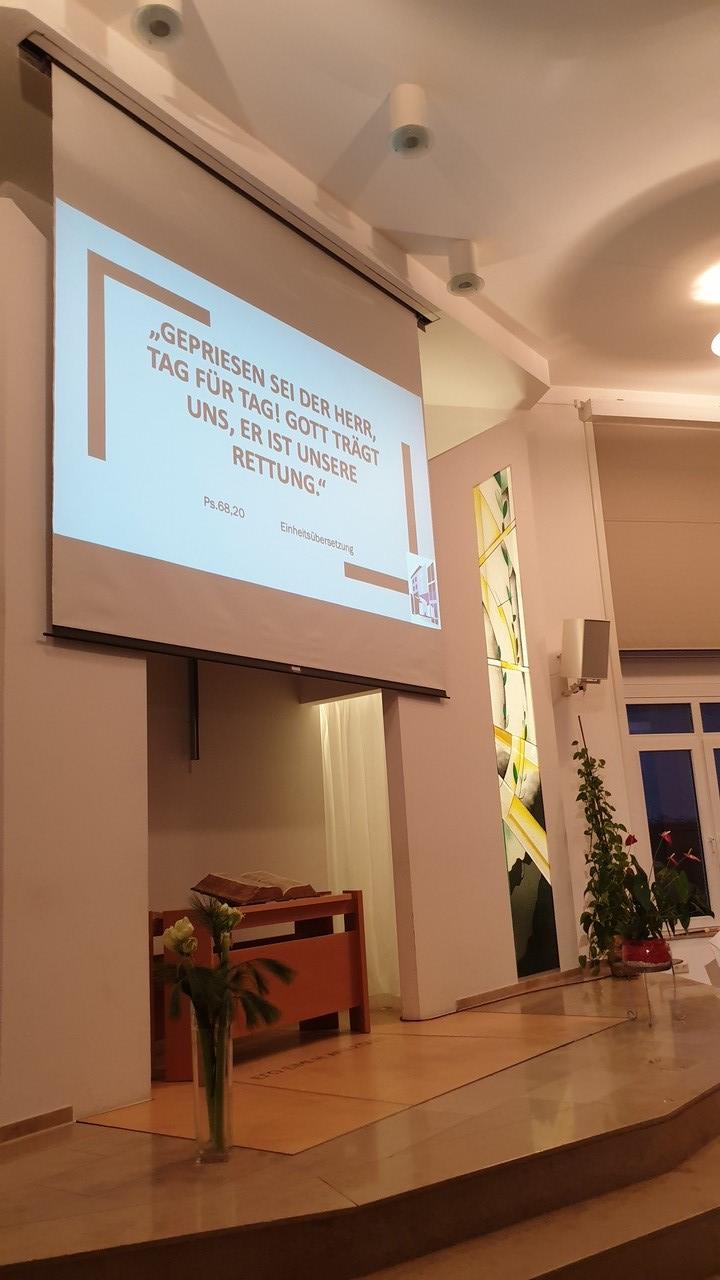 Ein Novum gab es bei dieser Jahresschlussandacht: Aufgrund der Coronabeschränkungen bestand neben der direkten Teilnahme bei dieser Andacht auch erstmals die Möglichkeit, diese vor dem heimischen Bildschirm live mitzuerleben, wovon einige Geschwister auch Gebrauch machten.