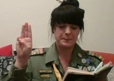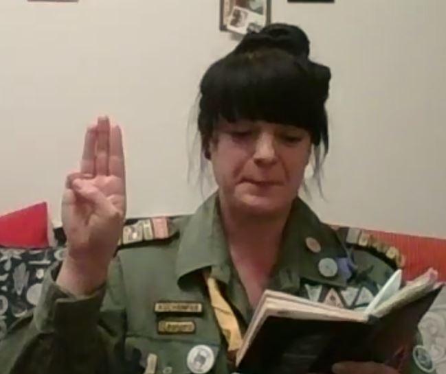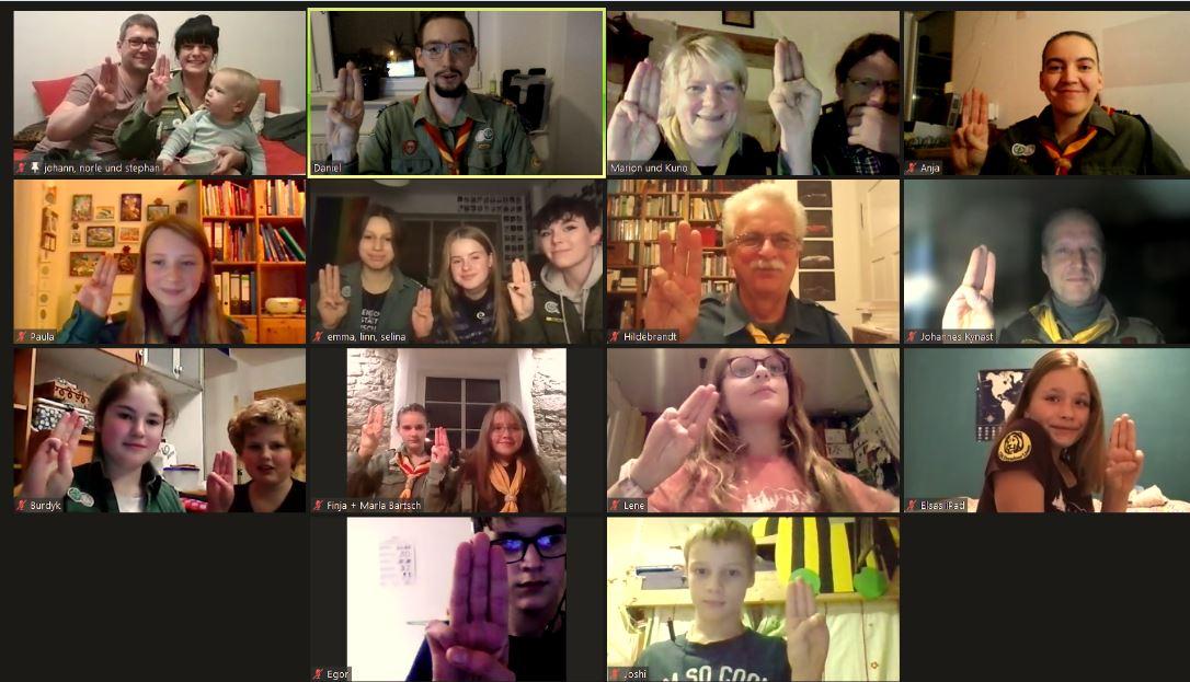 Erstmalig ONLINE: Wir nahmen Andreas ganz offiziell in unsere Gruppenleitung auf. Er legte sein Versprechen als Pfadfinderleiter ab. (Wen das interessiert: https://adventjugend.de/aufgabenbereiche/cpa/selbstverstaendnis/ ) Jetzt trägt er die blaue Schnur. Nach vielen Jahren aktiver Mitgliedschaft: Herzlich willkommen, lieber Andreas.