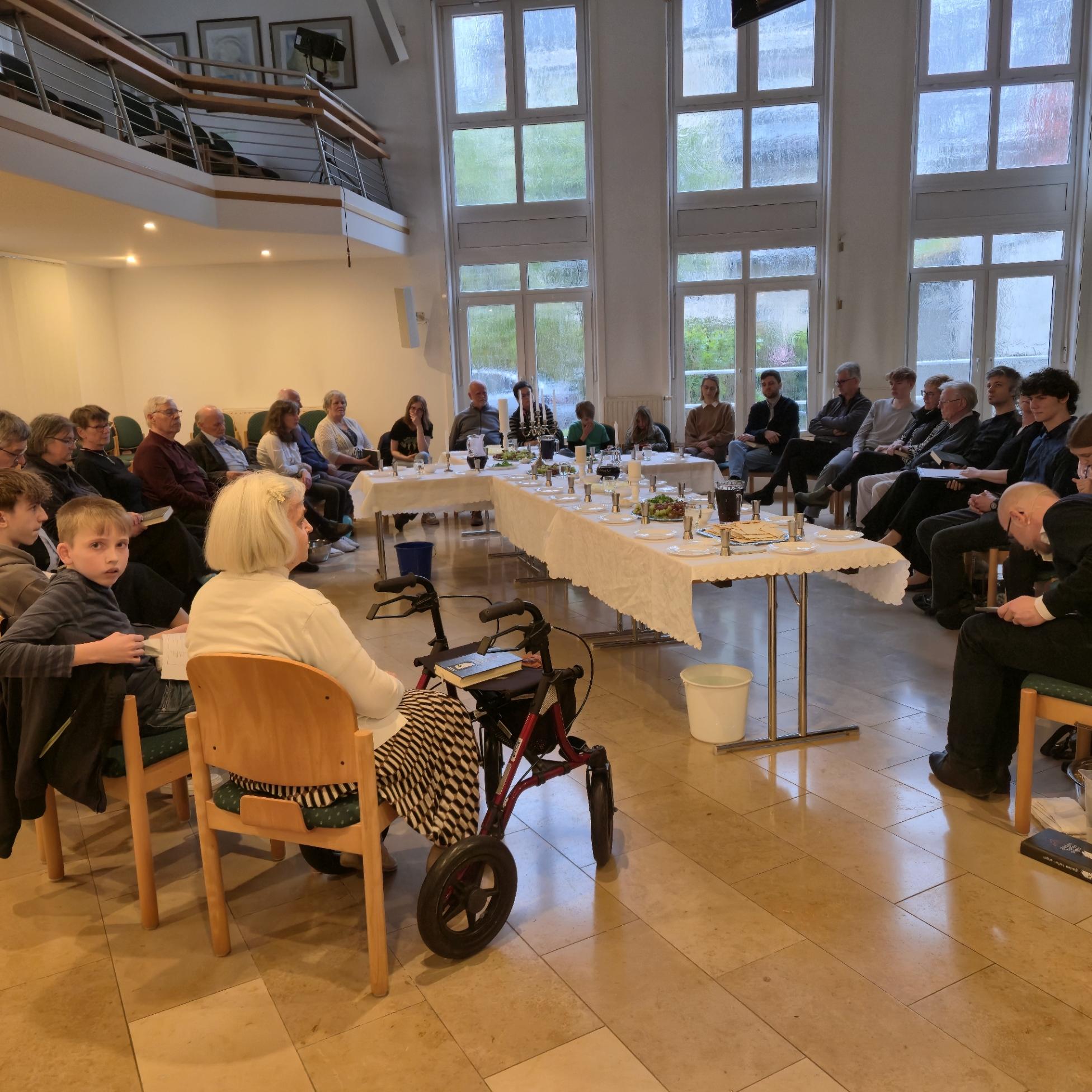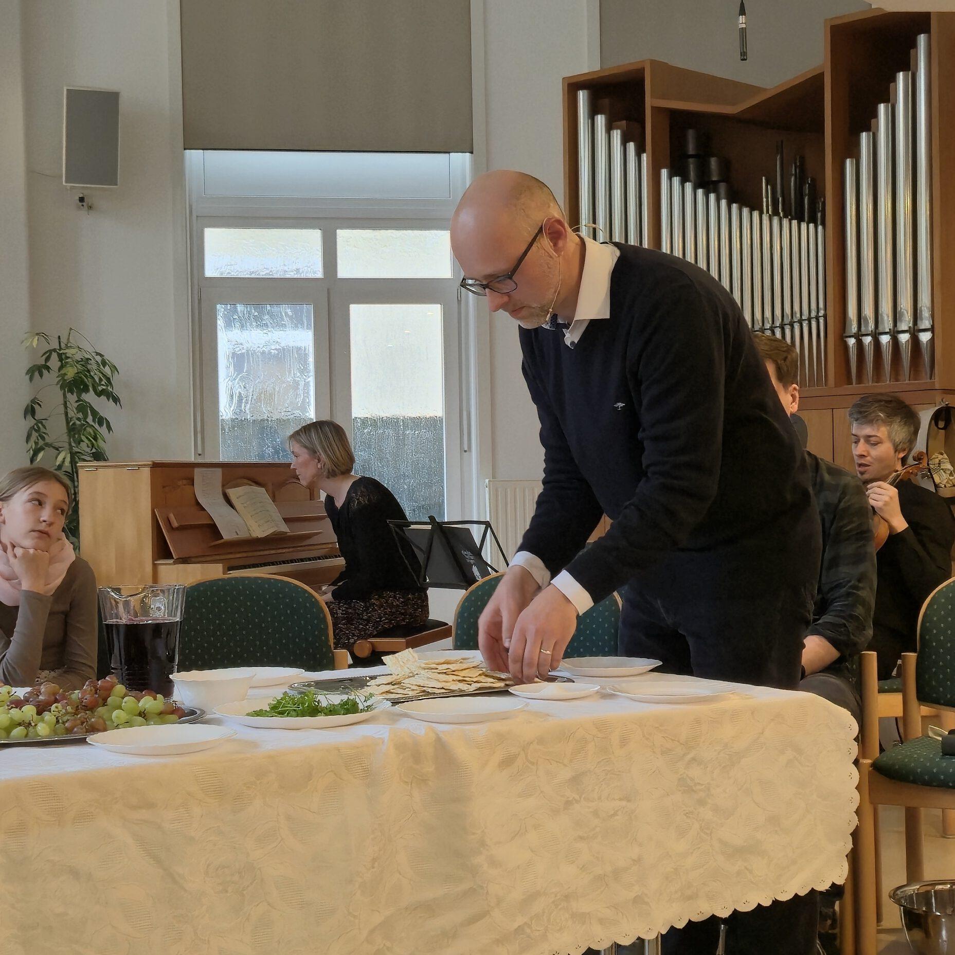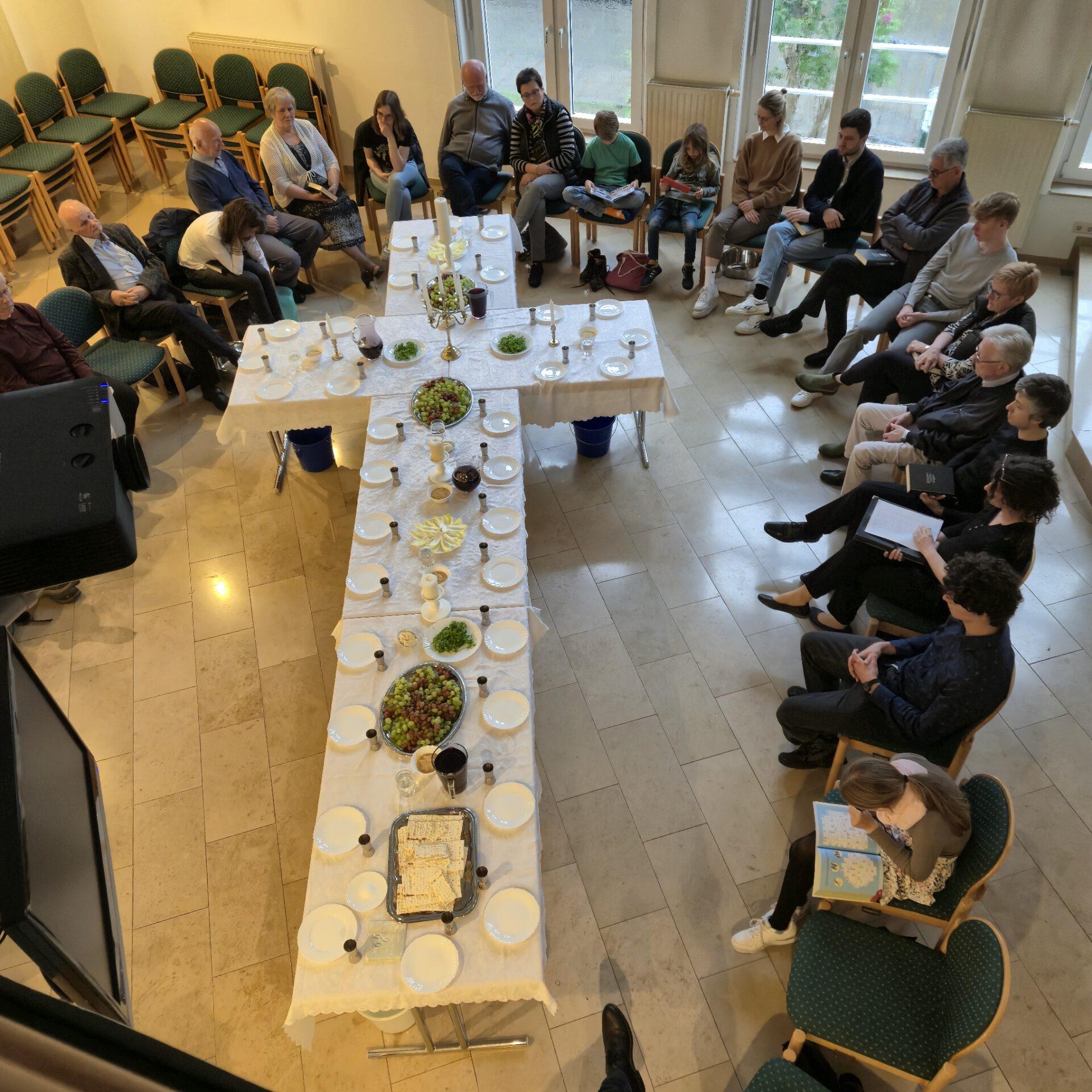 Am Abend des Karfreitag trafen sich Freune, Gäste und Geschwister der Gemeinde in Erinnerung an das Sterben Jesu Christi, um gemeinsam einen Brückenschlag zu wagen: das Erlebnis eines jüdischen Sedermahl, wie es Jesus mit seinen Jüngern kurz vor seiner Kreuzigung feierte. Pastor Martin Hartlapp nahm uns mit seinen sorgsam gewählten Worten und den symbolischen Handlungen mit hinein in die Riten und Geschehnisse der damaligen Zeit in Israel, um uns einen Eindruck von der Zeit und Kultur zu ermöglichen, in der Jesus lebte. Eingerahmt von toller Musik durften wir uns uns den Riten der damaligen Zeit nähern, an köstlichen Speisen laben und gemeinsam einen tollen Abend erleben. DR
