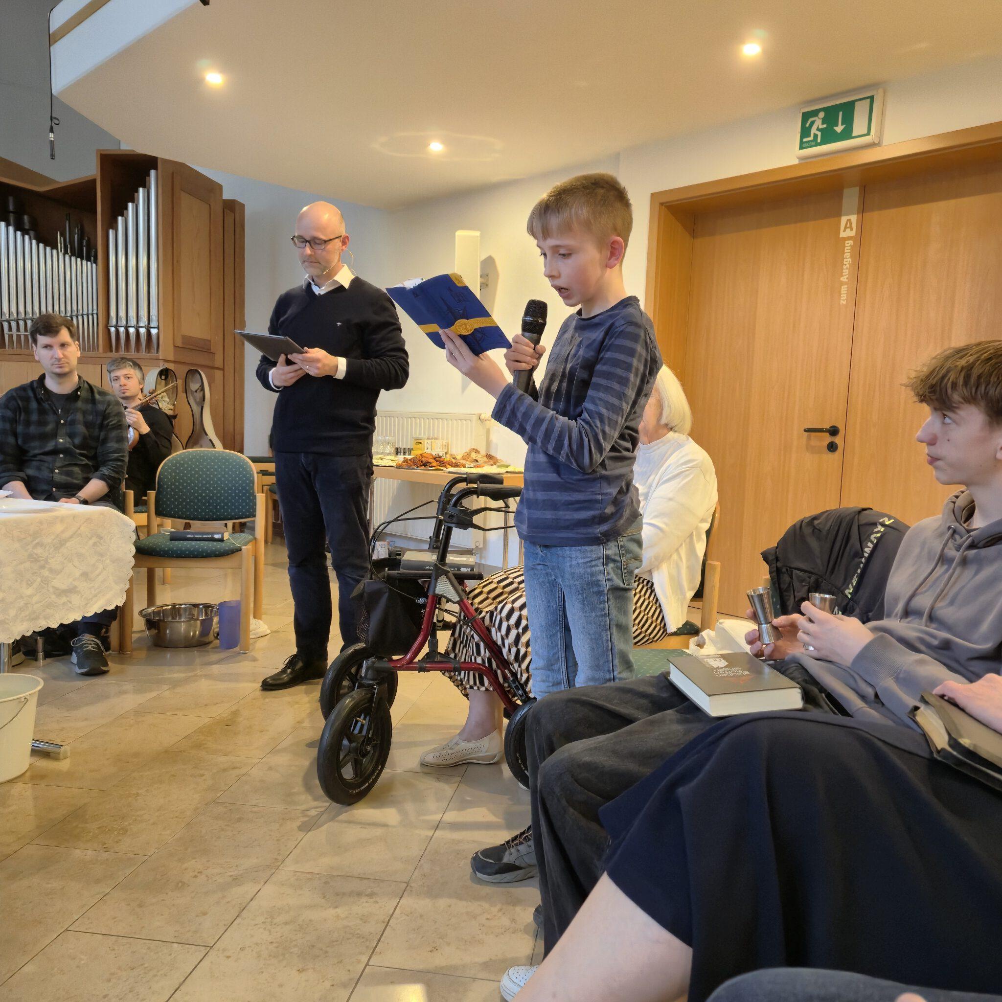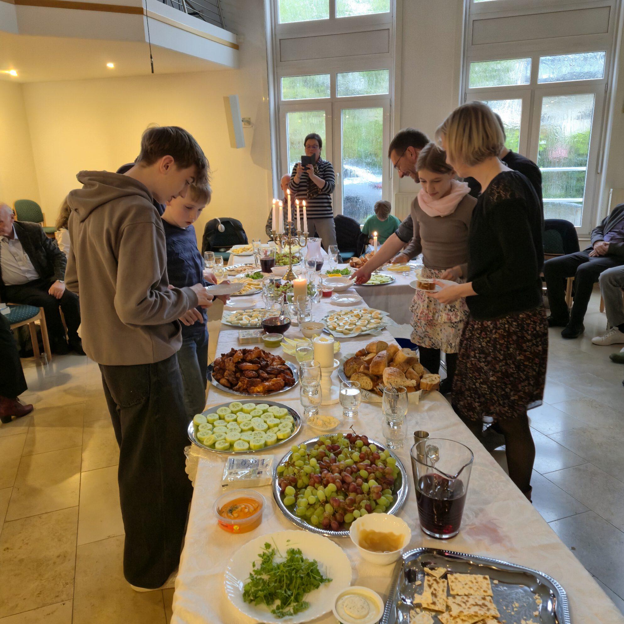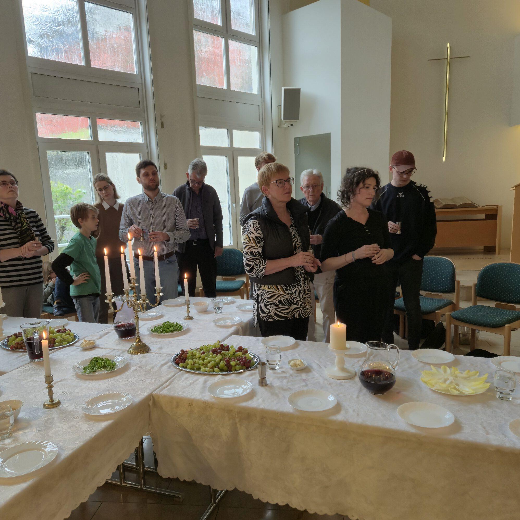 Am Abend des Karfreitag trafen sich Freune, Gäste und Geschwister der Gemeinde in Erinnerung an das Sterben Jesu Christi, um gemeinsam einen Brückenschlag zu wagen: das Erlebnis eines jüdischen Sedermahl, wie es Jesus mit seinen Jüngern kurz vor seiner Kreuzigung feierte. Pastor Martin Hartlapp nahm uns mit seinen sorgsam gewählten Worten und den symbolischen Handlungen mit hinein in die Riten und Geschehnisse der damaligen Zeit in Israel, um uns einen Eindruck von der Zeit und Kultur zu ermöglichen, in der Jesus lebte. Eingerahmt von toller Musik durften wir uns uns den Riten der damaligen Zeit nähern, an köstlichen Speisen laben und gemeinsam einen tollen Abend erleben. DR